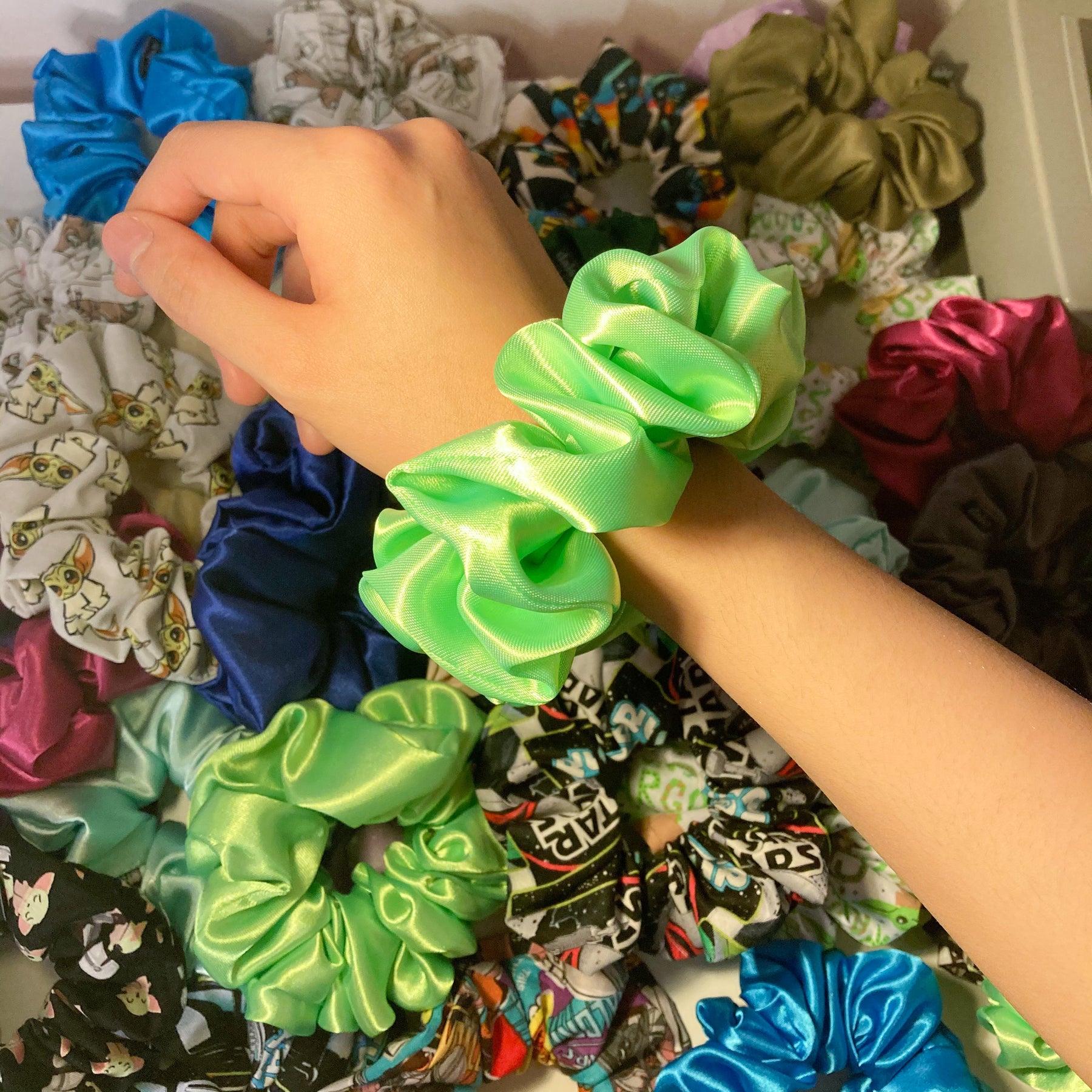 - 1 handmade satin scrunchie
