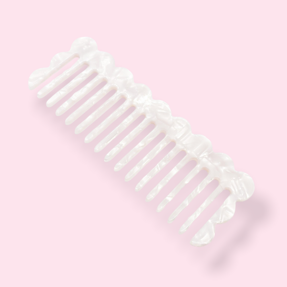 Gently detangle knots and style with ease with this Pearl Wide Tooth Comb! Made of durable acetate, its wide teeth minimize scalp stress and help maintain your hair's ideal look, whether wet or dry. This small but sturdy comb is perfect for on-the-go hair care and can easily fit in your tiny purse or travel bag. Keep it in your bag as your essential hair tool and enjoy healthy hair every day.